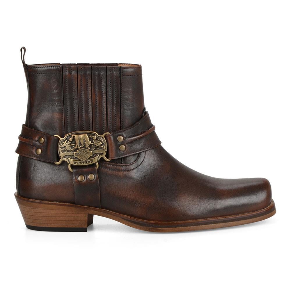 Kahverengi Deri Küt Burun Erkek Motorcu Botu