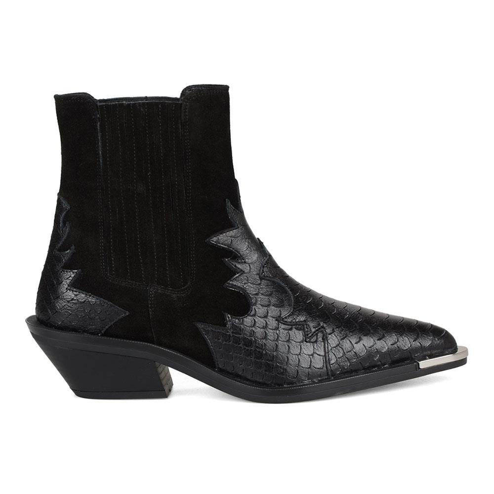 Metal Detaylı Siyah Kadın Kovboy Botu Kobe
